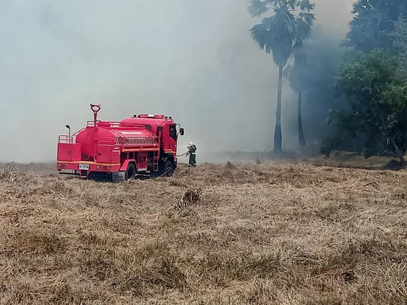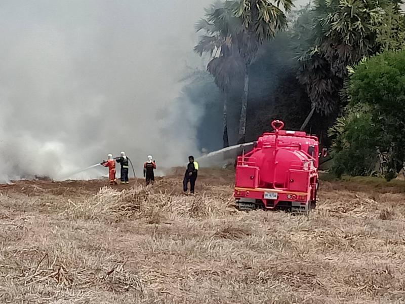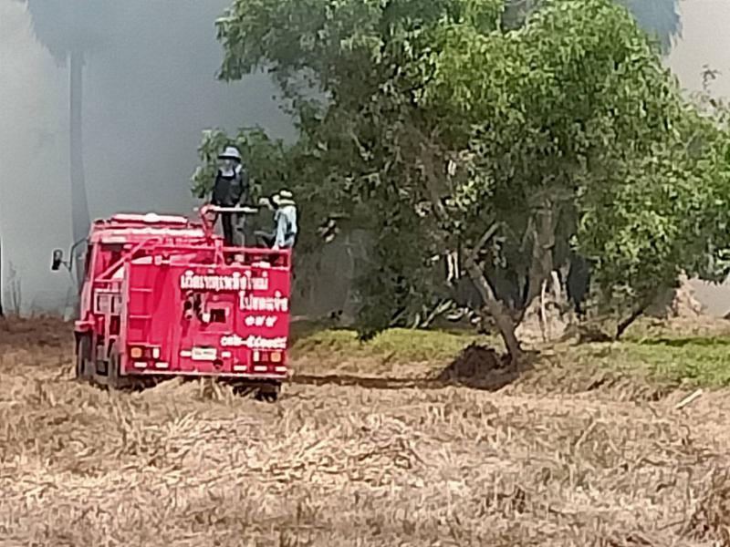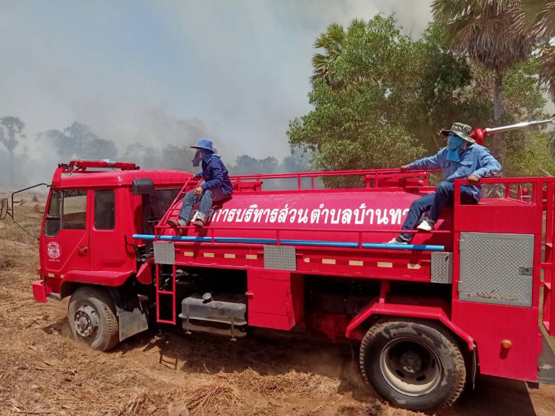 งานบรรเทาสาธารณภัย อบตบ้านทาน ช่วยเหตุเพลิงไหม้พื้นที่หมู่ 4 อบตโรงเข้ เนื่องจากเหตุเพลิงไหม้ในเวลา 13.30 น