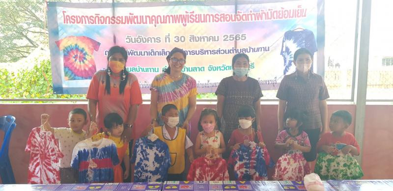 รายละเอียด : โครงการกิจกรรมพัฒนาคุณภาพผู้เรียน การสอนจัดทำผ้ามัดย้อมเย็น ณ.ศูนย์พัฒนาเด็กเล็กองค์การบริหารส่วนตำบลบ้านทาน วันที่ 30 สิงหาคม 2565 การจัดการศึกษาปฐมวัย เป็นพื้นฐานที่สำคัญในการพัฒนาเด็กปฐมวัยที่มีอายุ 3-5 ปี เป็นช่วงอายุที่สามารถพัฒนาความพร้อมทางด้านร่างกาย อารมณ์-จิตใจ สังคมและสติปัญญาได้อย่างเต็มที่ องค์ความรู้เกี่ยวกับศิลปะการนำผ้ามัดย้อมเย็นจากสีต่างๆ เพื่อทำให้เด็กได้เกิดการเรียนรู้เรื่องสี การผสมสีเพื่อเกิดเป็นสีใหม่ได้ด้วยตนเอง เป็นการศึกษาโดยการเน้นผู้เรียนเป็นสำคัญด้วยการเล่น จึงได้จัดกิจกรรมผ้ามัดย้อมเย็นให้เด็กได้ลงมือทำ -เพื่อให้เกิดการเรียนรู้และเกิดความสนุกสนาน -เพื่อให้เด็กได้รู้ถึงการทำผ้ามัดย้อมเย็น -เพื่อให้เด็กเกำิดความคิดสร้างสรรค์ในการใช้สีต่างๆให้เกิดสีใหม่ขึ้น -เพื่อให้เด็กได้เรียนรู้จากประสบการจริงผ่านการเล่น เพื่อให้เด็กนำผ้าที่มัดย้อมไปใช้ประโยชน์ในชีวิตประจำวัน