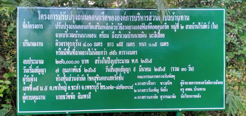โครงการปรับปรุงถนนคอนกรีตเสริมเหล็กด้วยวิธีลาดยางแอสฟัลท์ติกคอนกรีต หมู่ที่ 2 สายบ้านไร่สัตว์ (ใน) จากบริเวณบ้านนางจร สีผม ถึงบริเวณบ้านนายผิน มะลิเลื้อย (9 ภาพ)