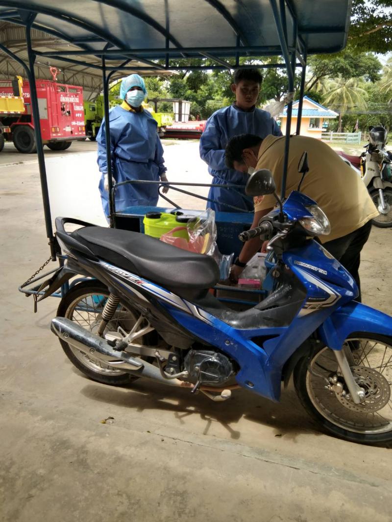 รายละเอียด : วันที่ 16 สิงหาคม 2564 นายชยพล มิชสิน นายกองค์การบริหารส่วนตำบลบ้านทาน มอบหมายให้เจ้าหน้าที่ดำเนินการฉีดพ่นสารเคมีฆ่าเชื้อโรคไวรัสโควิช 19 ในหมู่บ้านผู้ป่วยติดเชื้อในพื้นที่ตำบลบ้านทาน อำเภอบ้านลาด จังหวัดเพชรบุรี เพื่อเป็นการป้องกันการแพร่ระบาดโรคไวรัสโควิค 19