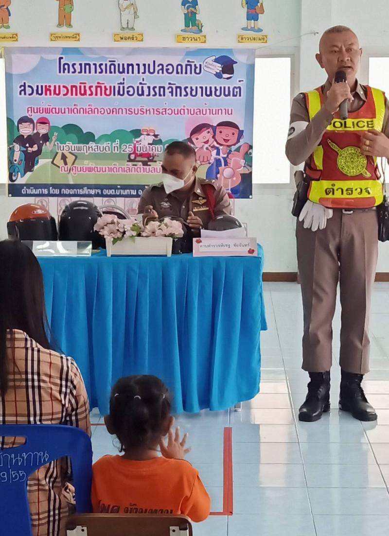 โครงการเดินทางปลอดภัย สวมหมวกนิรภัยเมื่อนั่งรถจักรยานยนต์ โดยศูนย์พัฒนาเด็กเล็กองค์การบริหารส่วนตำบลบ้านทาน (24 ภาพ)
