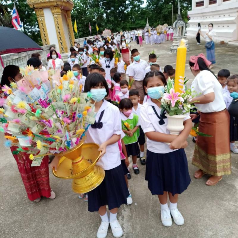 คณะบริหาร อบต.บ้านทาน ,สมาชิกสภา อบต. และพนักงานส่วนตำบลบ้านทาน ร่วมกับคณะครูและนักเรียน โรงเรียนวัดจันทาราม และโรงเรียนบ้านดงห้วยหลวง ร่วมกันแห่เทียนและถวายเทียนพรรษาเนื่องในวันเข้าพรรษา ประจำปี 2565 (19 ภาพ)