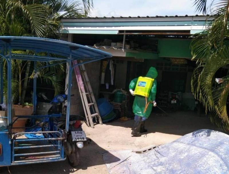 ฉีดพ่นสารเคมีฆ่าเชื้อโรคไวรัสโควิด 19 ในหมู่บ้านผู้ป่วยติดเชื้อในพื้นที่ตำบลบ้านทาน (2 ภาพ) [20 สิงหาคม 2564]