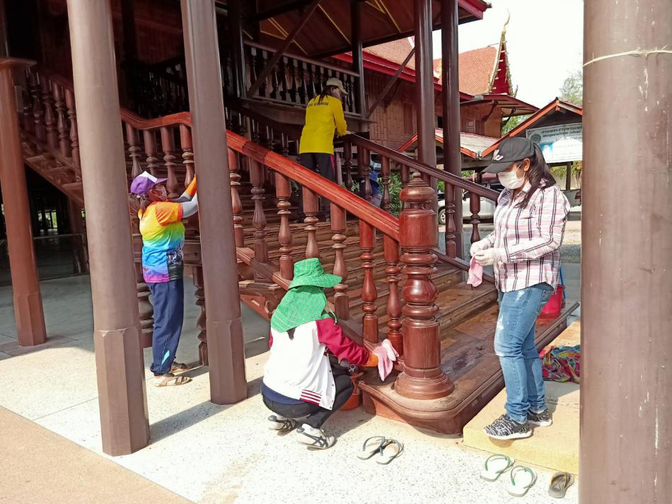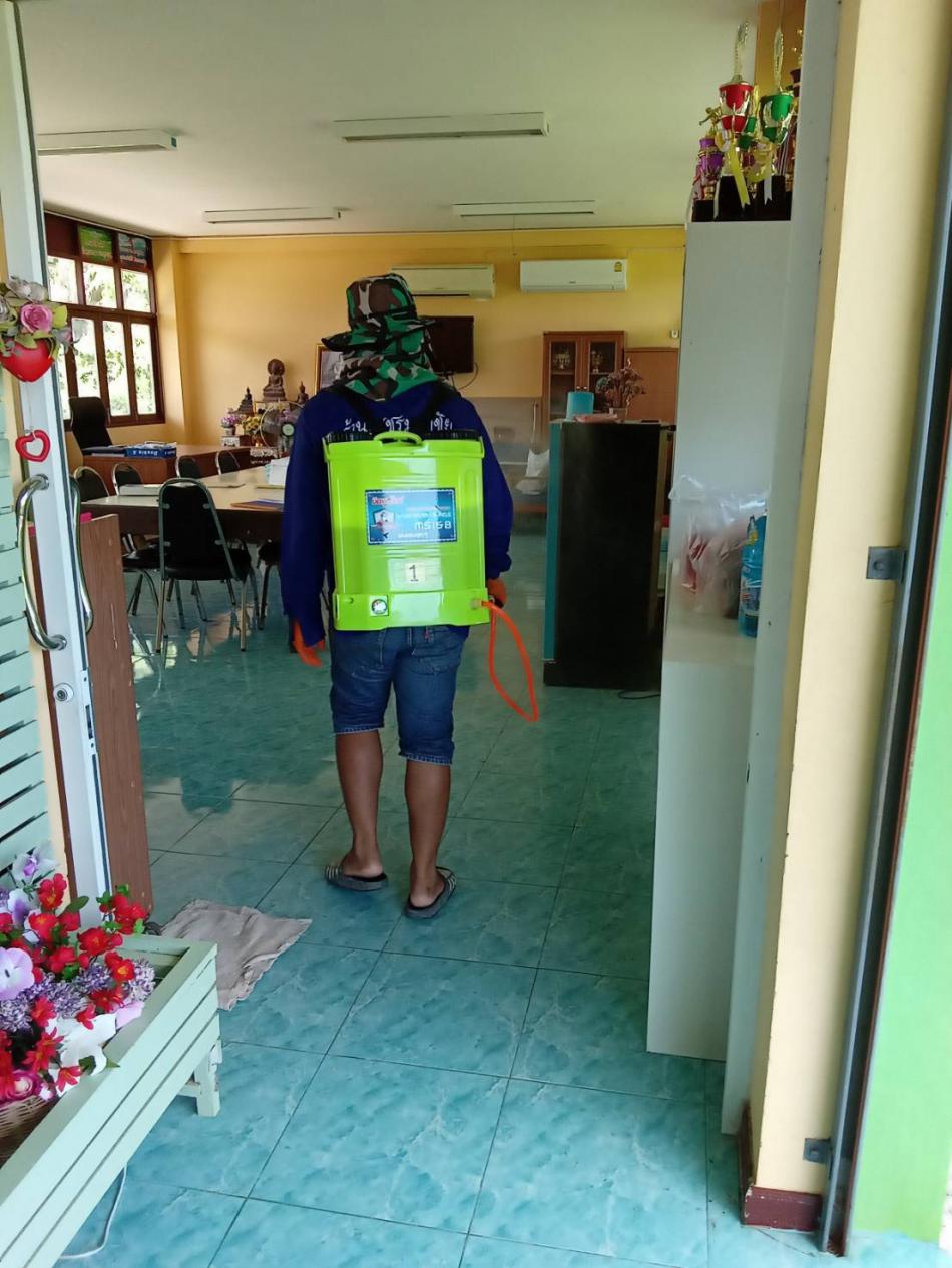ภาพกิจกรรมการฉีดพ่นน้ำยาฆ่าเชื้อเพื่อเตรียมความพร้อมตามมาตรการป้องกัน COVID 19 ก่อนเปิดเทอม