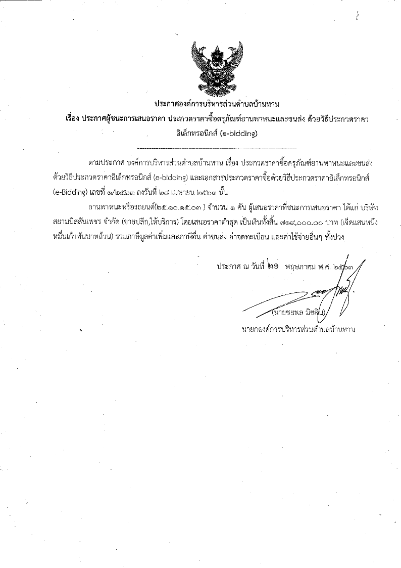 ประกาศผู้ชนะการเสนอราคา ประกวดราคาจัดซื้อครุภัณฑ์ยานพาหนะและขนส่ง ฯ