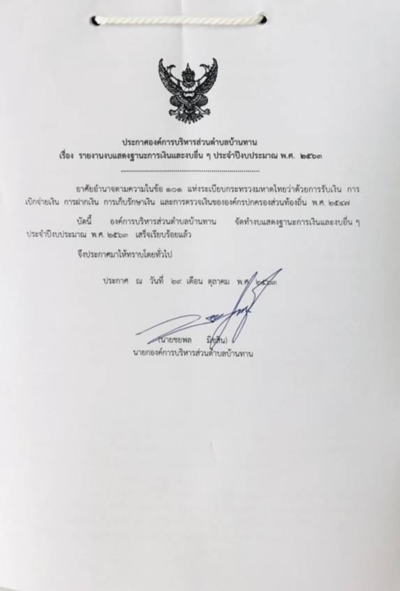 รายงานงบแสดงฐานะการเงินและงบอื่น ๆ ประจำปีงบประมาณ พ.ศ. 2563