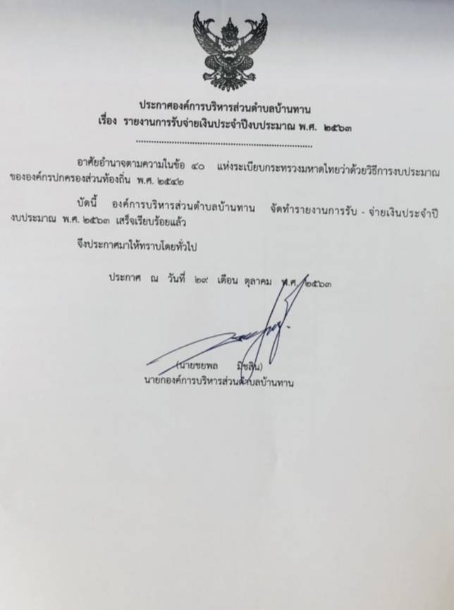 รายงานการรับจ่ายเงินประจำปีงบประมาณ พ.ศ. 2563