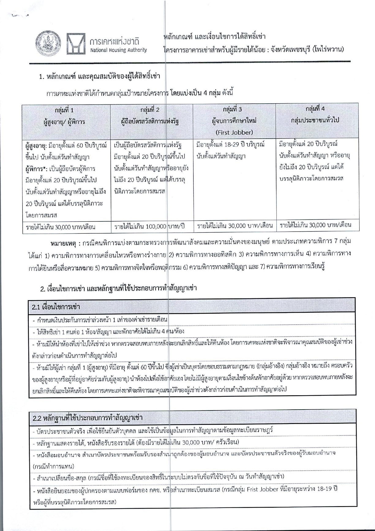 หลักเกณฑ์ และเงื่อนไขการได้สิทธิ์เช่า โครงการอาคารเช่าสำหรับผู้มีรายได้น้อย