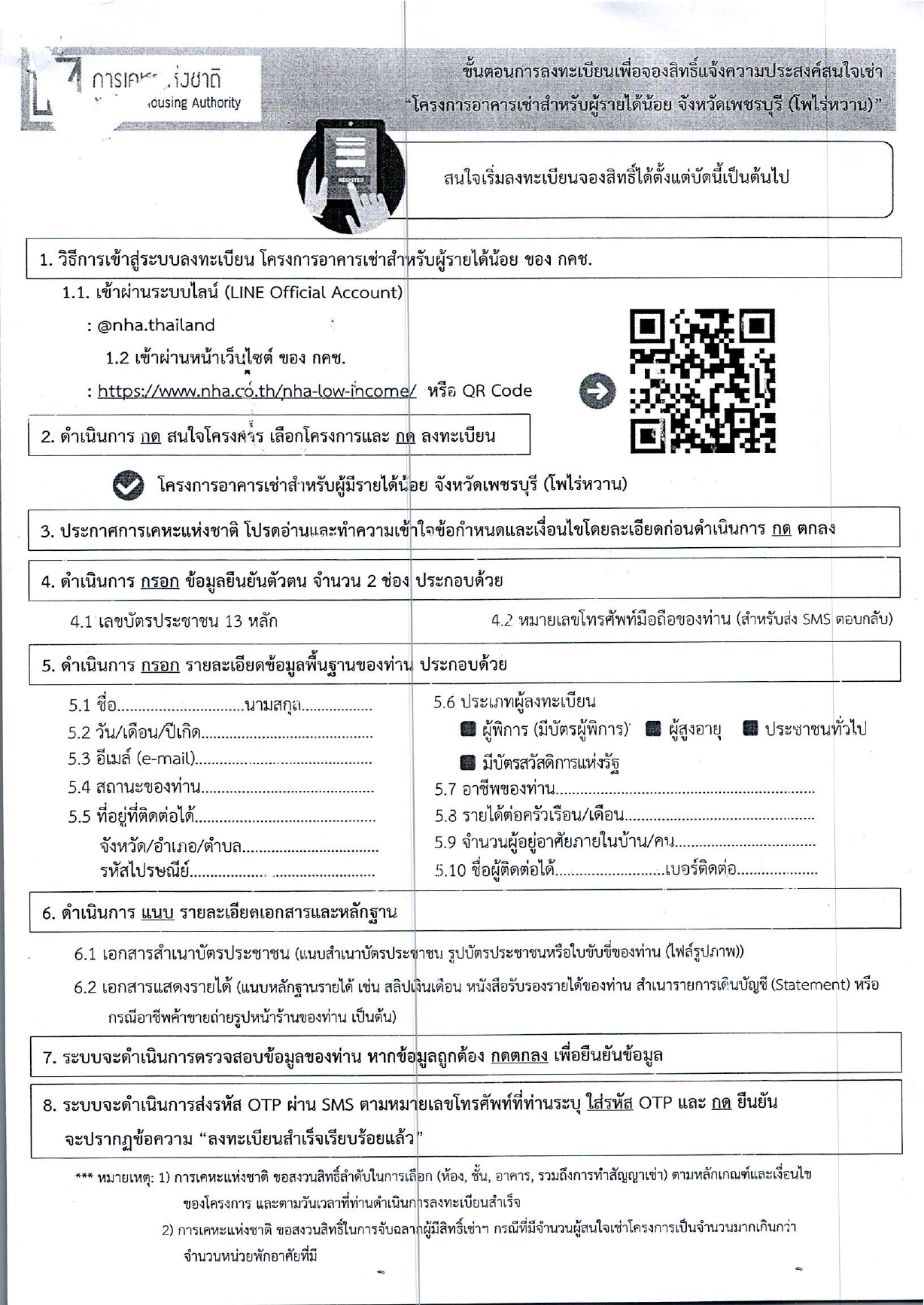 ขั้นตอนการลงทะเบียนเพื่อจองสิทธิ์แจ้งความประสงค์สนใจเช่า โครงการอาคารเช่าสำหรับผู้รายได้น้อย